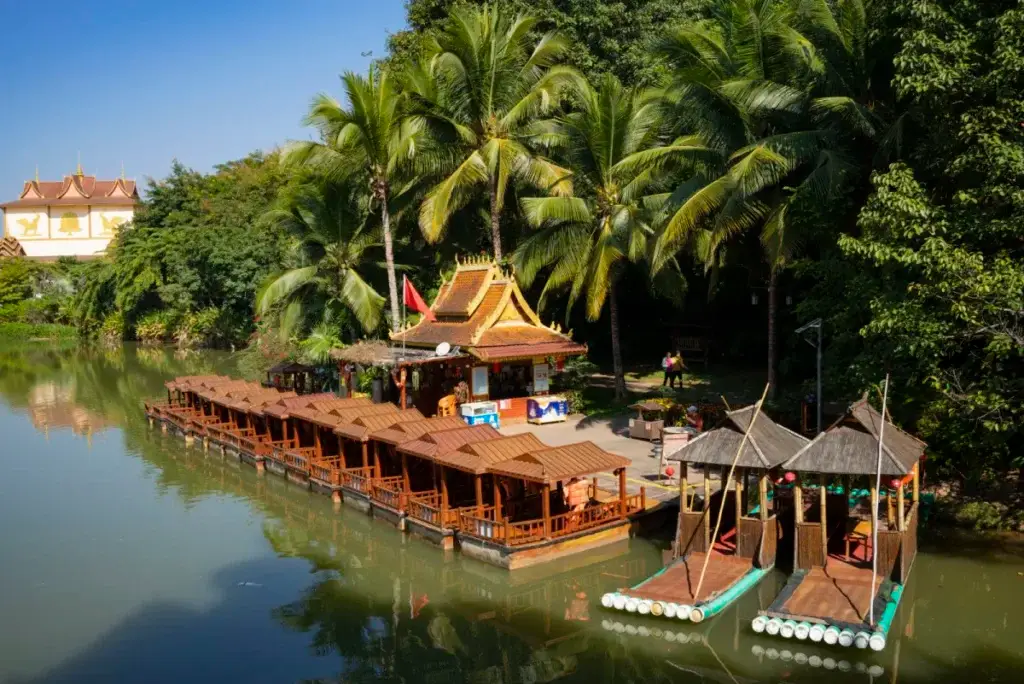 Au cœur du parc, des temples bouddhistes et des monuments royaux viennent compléter le décor naturel. L’architecture des temples est d’une grande beauté, avec des détails dorés et des décorations richement ornées, typiques de l’art bouddhiste de la région. Les visiteurs peuvent admirer des statues de Bouddha, des pagodes majestueuses et des salles de prière, qui renforcent l’atmosphère spirituelle et mystique de cet endroit. Il incarne l’âme de Xishuangbanna, un lieu où se croisent histoire royale, religion bouddhiste et nature tropicale.