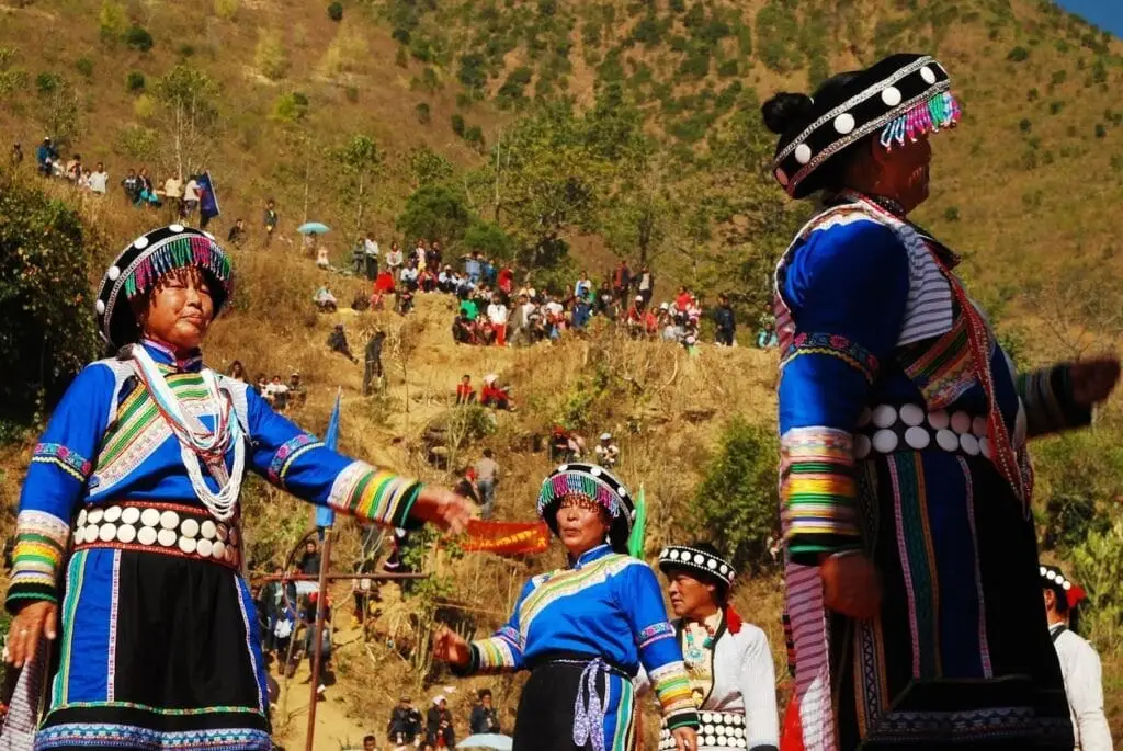 Durant cette période, qui correspond aux festivités du Nouvel An chinois, la “Fête des bains” est le moment le plus vibrant dans la vallée de Nujiang. Les jeunes hommes et femmes des villages voisins s’y rassemblent pour chanter, danser et célébrer toute la nuit.