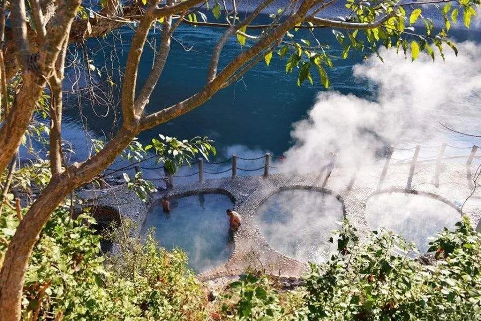 On y trouve une dizaine de bassins de différentes tailles, avec des eaux aux températures et à la clarté variées. L’eau fraîchement sortie de la source est souvent trop chaude pour être supportée par le corps humain : il est conseillé de la laisser refroidir naturellement pendant au moins une demi-heure avant de s’y plonger. Sinon, vous pouvez choisir un bassin déjà rempli et prêt à être utilisé.