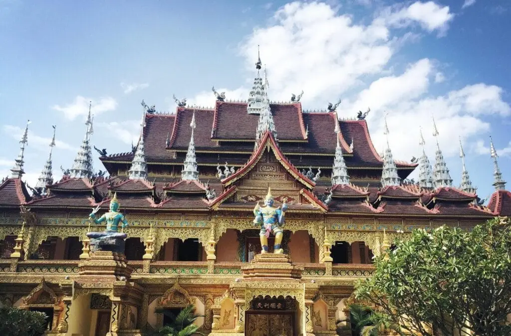 Son atmosphère exotique qui vous transporte instantanément dans l’univers d’Asie du Sud-Est. L’architecture et les éléments décoratifs inspirés des traditions bouddhistes de Thaïlande, du Myanmar et du Laos confèrent au temple une ambiance unique, marquée par une fusion des styles architecturaux typiques de cette région.