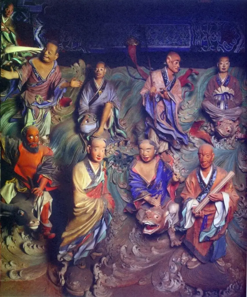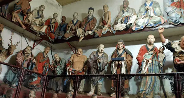 Le Temple de Bambou est particulièrement renommé pour ses 500 sculptures en argile de la dynastie Qing, réalisées par le sculpteur Li Guangxiu et son atelier. Ces statues représentent des figures bouddhistes, des arhat (disciples de Bouddha), et sont connues pour leur expressivité et leur détail réaliste, capturant des émotions humaines variées.