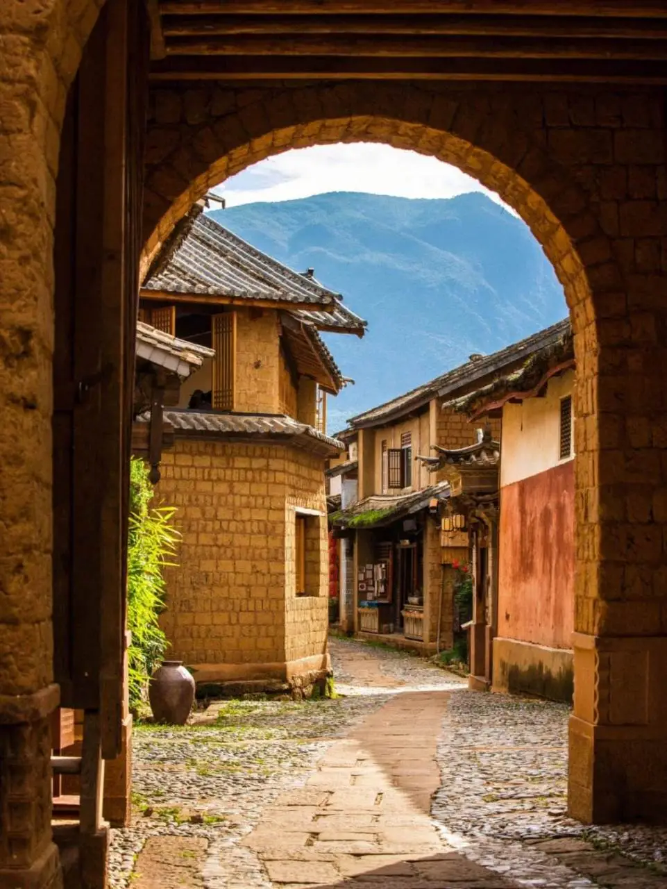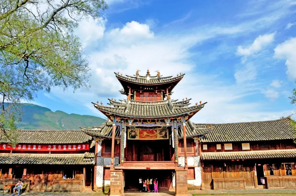 Le village conserve de nombreux bâtiments et rues traditionnels, en particulier la rue Sideng, qui est considérée comme l’un des marchés anciens les mieux préservés de Chine. L’architecture du village combine des éléments des cultures Han, Bai et tibétaine, reflétant le mélange culturel multiethnique. Les bâtiments anciens, les ponts en pierre, les temples et les scènes de théâtre du village possèdent une grande valeur historique et culturelle.