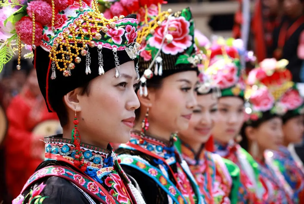 Dans ce village, dès la naissance d’une fille, sa mère commence à lui confectionner sa robe de mariée. Entièrement réalisée à la main, point par point, cette robe nécessite près de 20 ans de travail pour être achevée. Selon la tradition, le rouge et le vert étaient les couleurs principales des vêtements de cour de Nanzhao.
