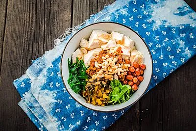 L’une des spécialités emblématiques de Kunming, ce plat se compose de bouillon chaud, de nouilles de riz et de divers ingrédients (comme des tranches de viande, des légumes, du tofu, etc.).