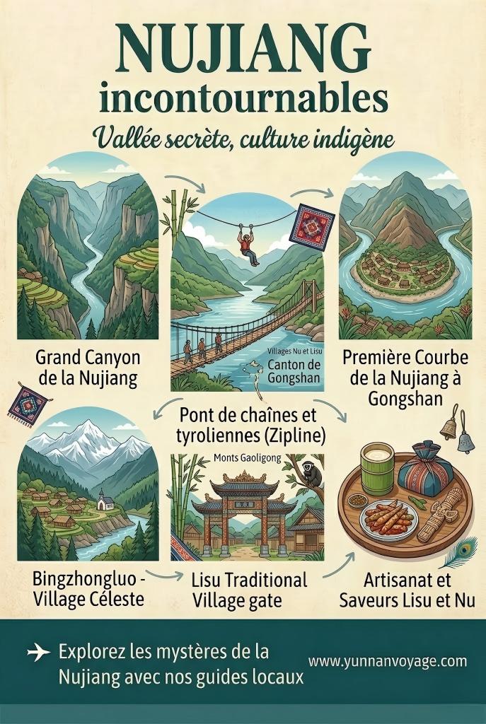 Pour profiter pleinement de votre voyage à Nujiang, il est conseillé de visiter pendant la saison sèche, de novembre à avril, lorsque les routes sont plus accessibles et les conditions météorologiques plus clémentes.