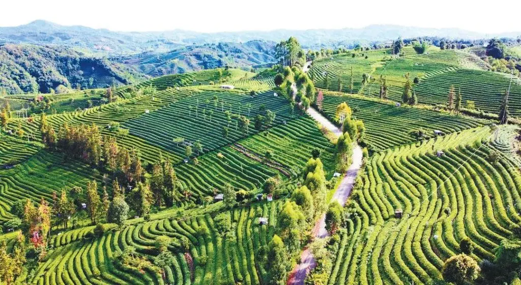 Considérée comme l’un des berceaux mondiaux du thé, Pu’er abrite des forêts anciennes de théiers. Le plus emblématique d’entre eux est Jingmai Shan (la montagne Jingmai), classée au patrimoine mondial de l’UNESCO en 2023 pour son paysage culturel unique de théiers anciens et ses anciens villages minoritaires. Ici, le thé pousse dans les forêts primaires, cultivé depuis des générations par les peuples autochtones comme les Bulang, les Dai ou les Hani, qui ont développé un art de vivre autour du thé.