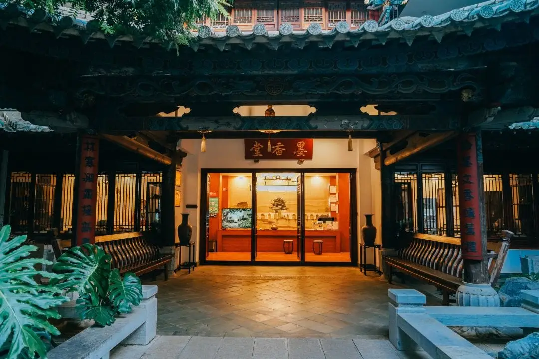 Moxiang Tang (Le Pavillon des Encres) : un espace élégant orné de bonsaïs, de calligraphies et de peintures, parfait pour les amateurs d’art traditionnel.