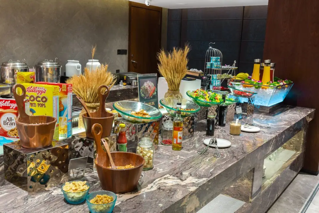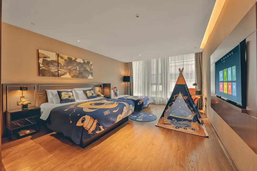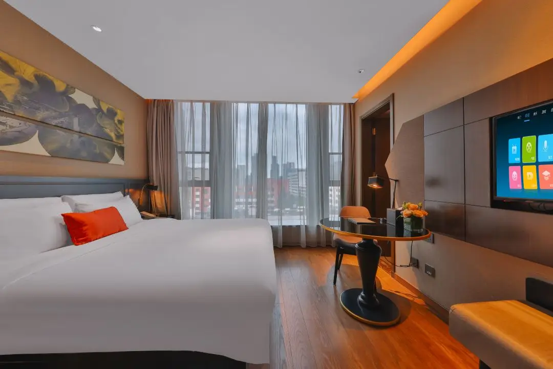 Les chambres sont dotées de grandes fenêtres panoramiques offrant une vue dégagée et une lumière naturelle abondante. L’hôtel propose un petit-déjeuner buffet sain et écologique, avec une sélection variée de plats chinois et occidentaux pour bien commencer la journée.