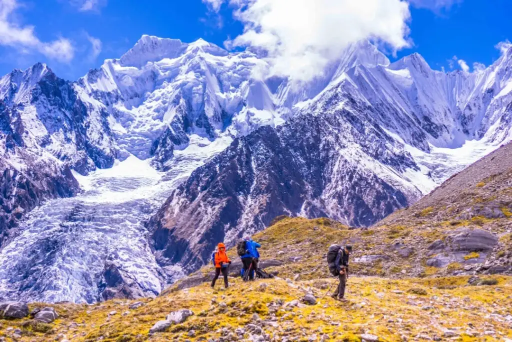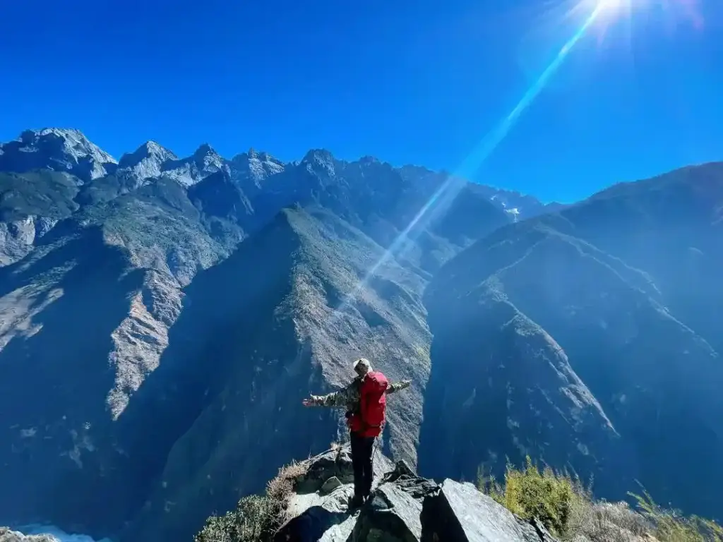 Le dénivelé cumulé atteint 4 650 mètres, avec le col du Yunnan-Tibet culminant à 5 200 mètres. Le campement le plus élevé se situe près de 4 000 mètres. Entouré de sommets enneigés, on approche de glaciers sous différents angles, et ce trek offre une véritable expérience de ce que l’on peut appeler un paradis sur Terre.