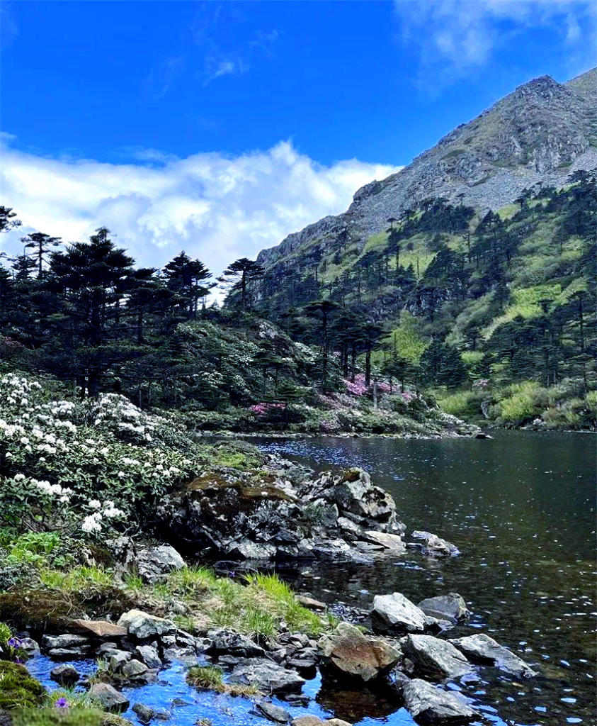 Parmi les dix itinéraires, Abujicuo est celui qui compte le plus de lacs d’altitude : près de 40 petits lacs jalonnent le chemin, chacun parfait pour une photo. En montant, on peut admirer de près le massif du Tianbao Snow Mountain. C’est donc une randonnée qui combine à la fois plaisir des yeux et véritable défi pour les randonneurs.