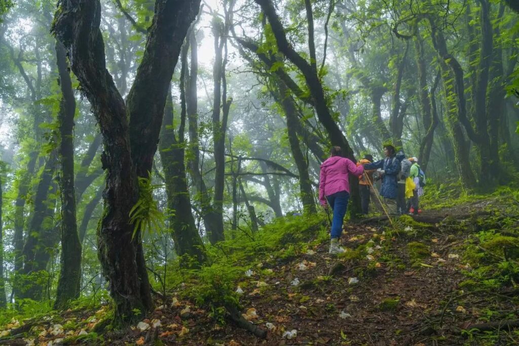 En pénétrant dans le Mont Gaoligong, on a l’impression d’entrer dans un monde préhistorique : des plantes jamais vues auparavant, comme le Cyathea, se trouvent partout dans la forêt. Sur deux jours, on parcourt environ 29 km à travers cette jungle primaire, avec un point culminant à 3 100 mètres. Il suffit de se préparer contre les insectes et l’humidité : le parcours n’est pas très difficile.